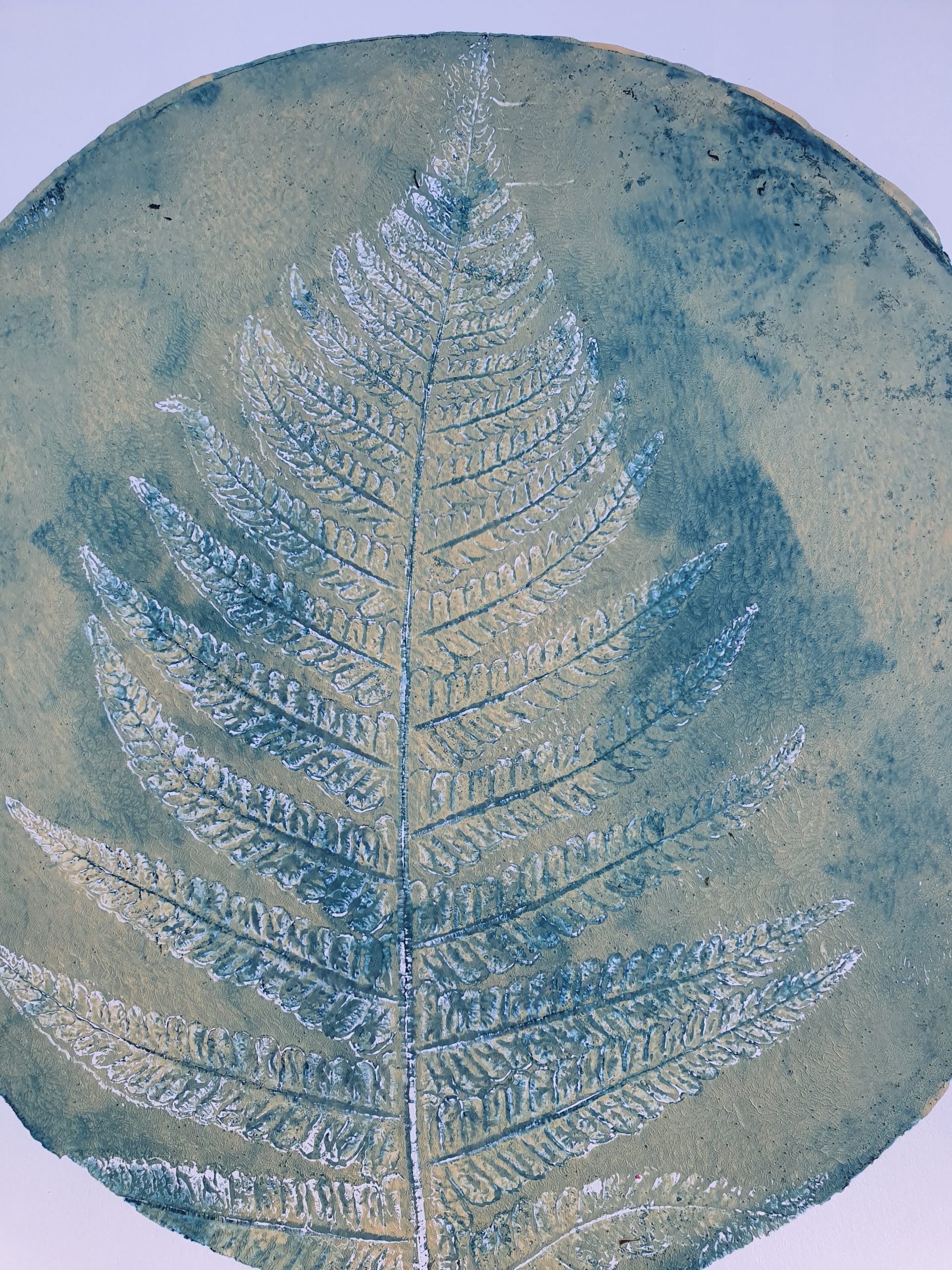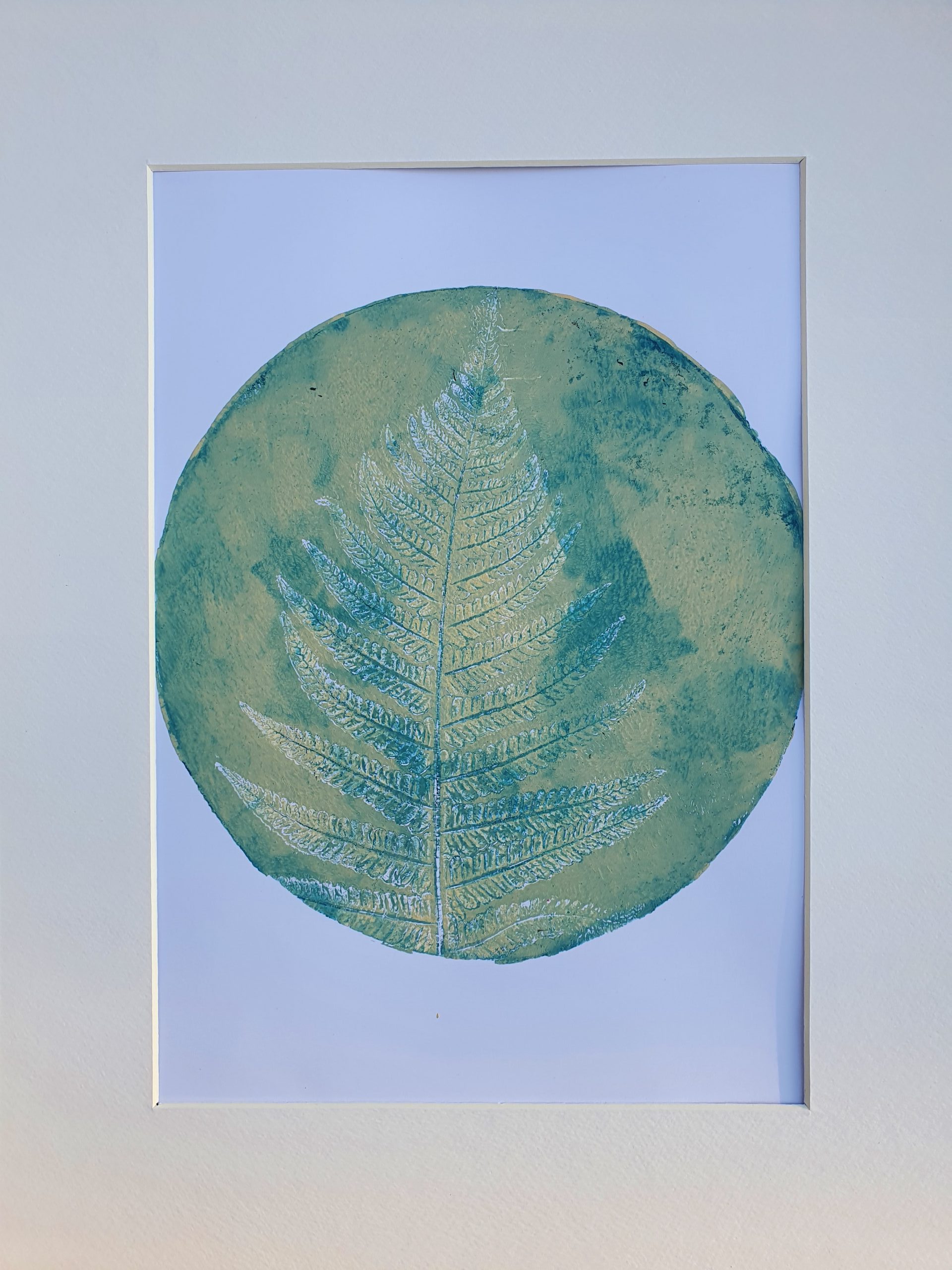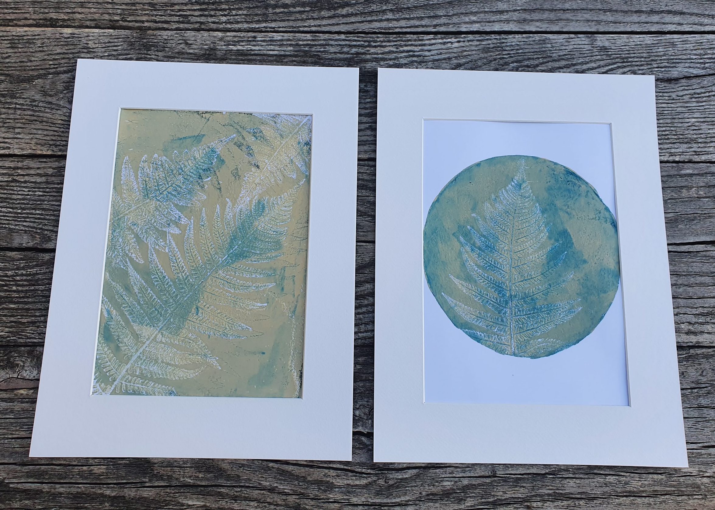 2er SET Farne in beige. Gelliart. Druck auf der Gelplatte in Acryl
